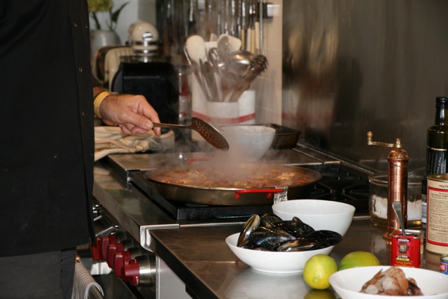 Use a 40cm Paella pan – and make sure it is level on the stove top!