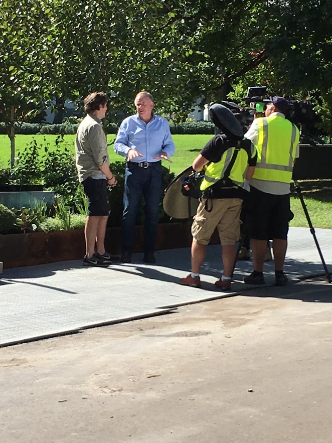 Sponsored by Husqvarna and constructed by Charlie’s crew, Inspired Exteriors, eight big burly blokes and one small Wingham girl got into tackling what was soon to be awarded a ‘Bronze Award- Winning Show Garden Medal.’