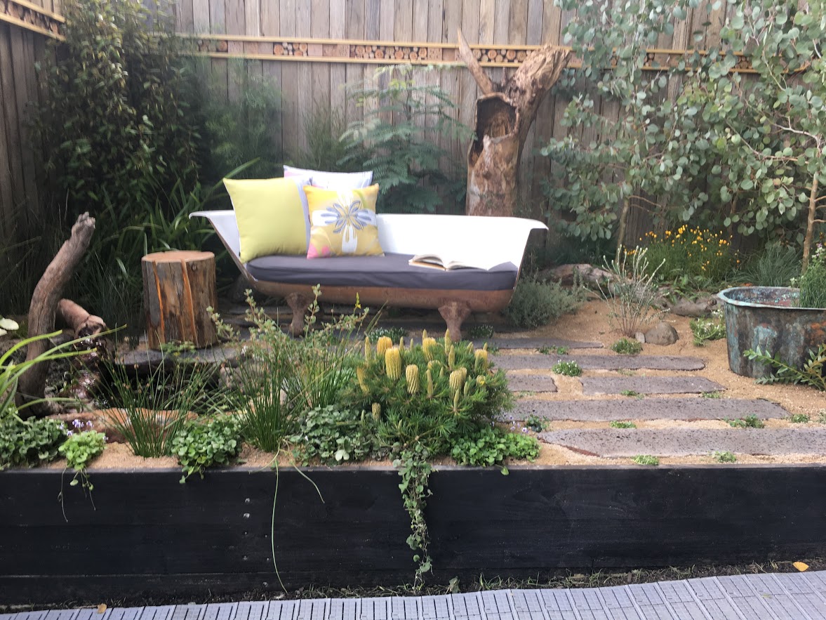 Upcycling of materials was also very popular this year, including timber sleepers, bricks and even an old cast iron bathtub which was reinvented into an outdoor day bed! Something I’d love to have in my garden.