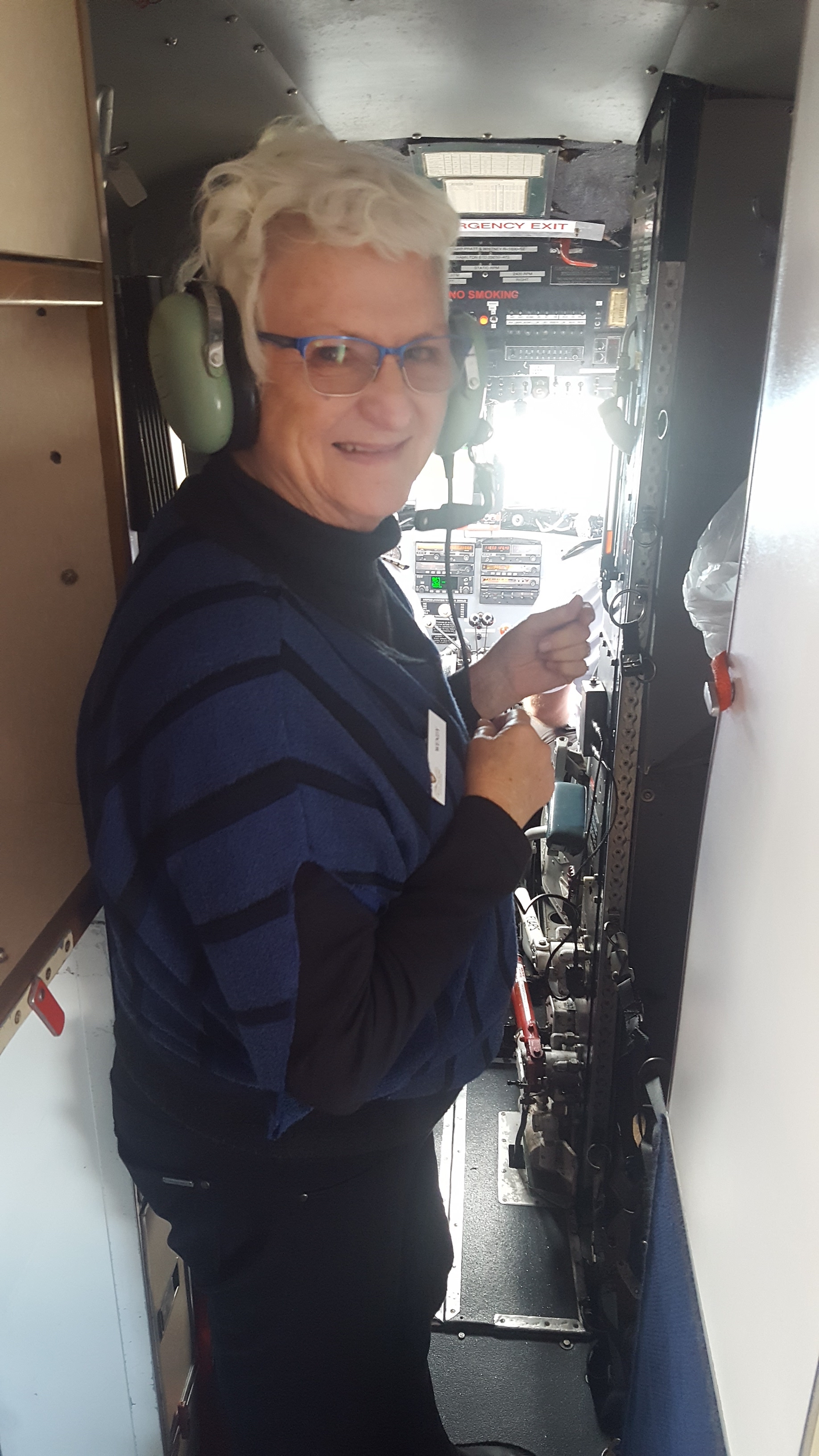 We first clapped eyes on our DC-3 on the tarmac outside the New Zealand Flying Doctor Service terminal at Christchurch airport. There she was, our very own transport for 11 days, our Air Chathams’ Gooney Bird with a crew of three, captain – Keith Mitchell, first officer – Daryl Pettit and our flight attendant – Violet Gordon-Glassford, resplendent in their smart uniforms.