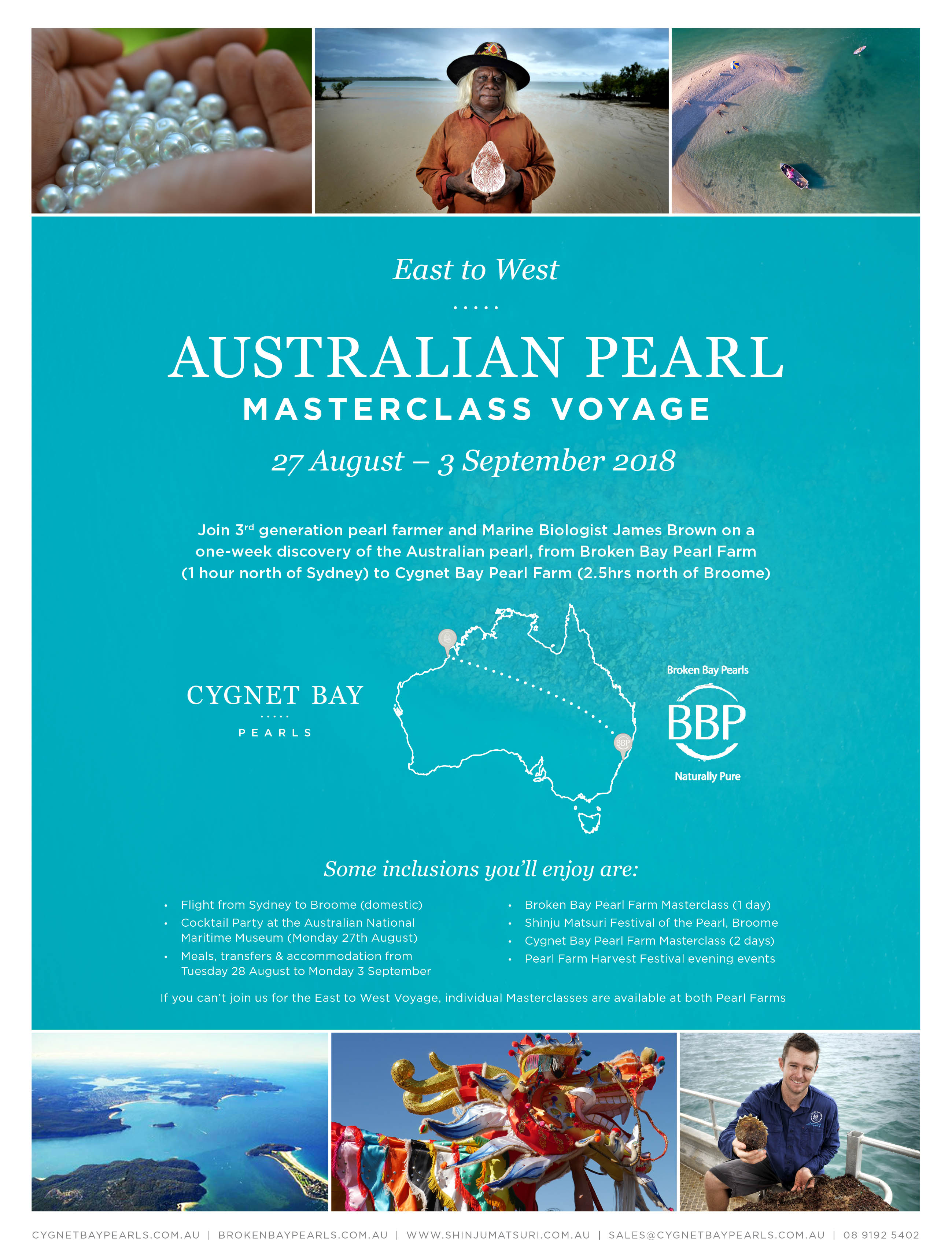 A week-long program, the Australian Pearl Masterclass Voyage, ends on Monday 3rd September, and includes a one-way flight from Sydney to Broome, plus all transfers, accommodation and meals. Class sizes are limited to twelve, to ensure a memorable experience for all participants.