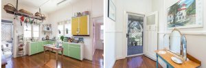It has high ceilings, two large bedrooms plus a spare room which has been set up as an extra bedroom previously, and the funky original cupboards are a real feature of the large eat-in country style kitchen.