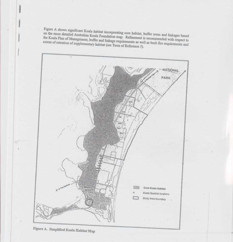In 1996 and 1998 an Environmental Consultant for the then Great Lakes Council declared and implemented ‘Core Koala Habitat’ – pursuant to State Environmental Planning Policy [SEPP 44] Koala Habitat Protection – in the North Hawks Local Environmental Study.