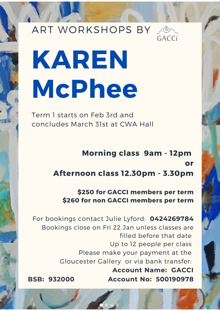 GACCI is pleased to offer COMMUNITY ART CLASSES in Gloucester to be tutored by local artist Karen McPhee.