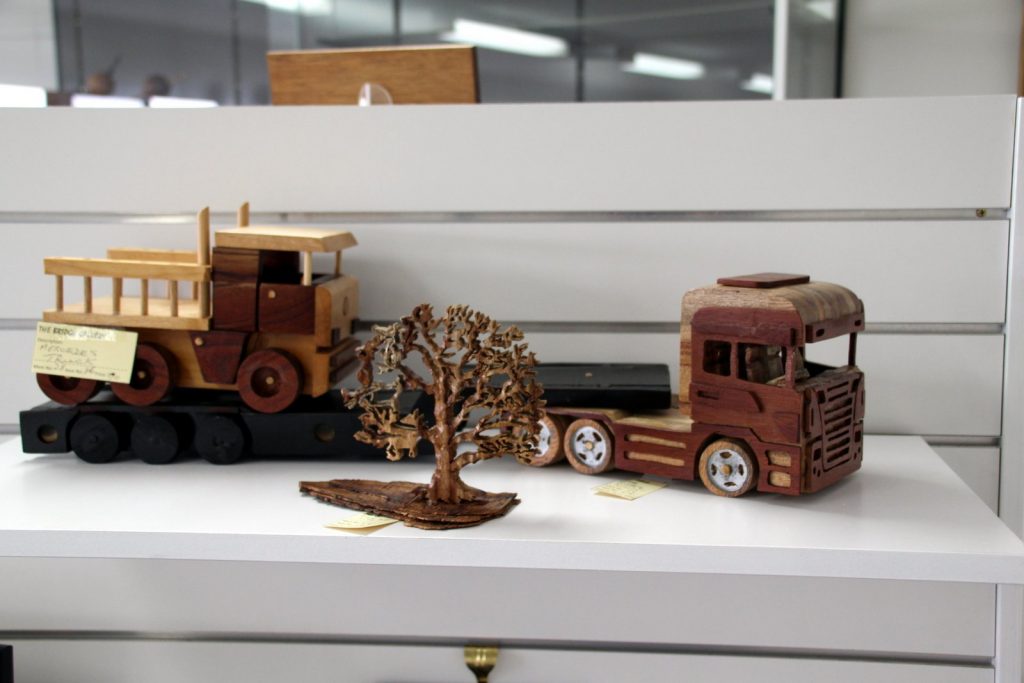 The Bridge Gallery was re-worked in 2015 and opened in time for the 75th anniversary of the nearby Martin Bridge on 17th May, about 250 visitors came through the doors on that day. All the items on display are made by the members reflecting the variety of work possible. At the time of writing there seems to be a friendly contest to see who can make the smallest turned goblet, currently one about 20mm high seems to be the smallest!