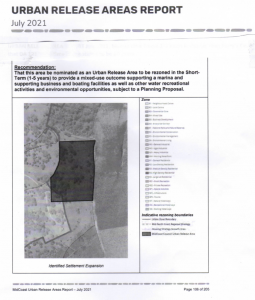 That this area (this refers to 7 Petrel Place Lot 10. ed.) be nominated as an Urban Release Area to be rezoned in the ShortTerm (1-5 years) to provide a mixed use outcome supporting a marina and supporting business and boating facilities as well as other water recreational activities and environmental opportunities, subject to a Planning Proposal.”