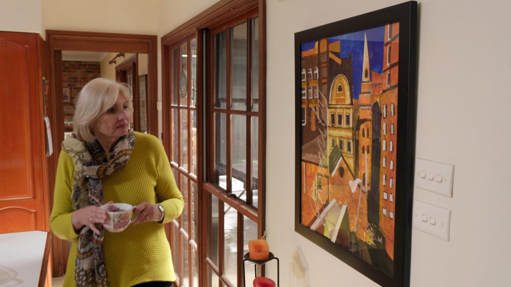 I chose Sydney’s lovely old buildings, but it wasn’t until I added an Arthur Stace ‘Eternity’, written along the side of my work, that I felt my painting was complete. In my mind, it seems his writing has almost lasted an eternity. Sydney’s modern-day graffiti artists could learn from the elegance of Arthur Stace’s work. And its message.’ And adds Joy with a smile, ‘My old school in Sydney discouraged art because it wasn’t a matriculation subject. Anyway, I did art for the leaving certificate. The school no longer exists. It is now an art gallery! Poetic Justice I like to think!’