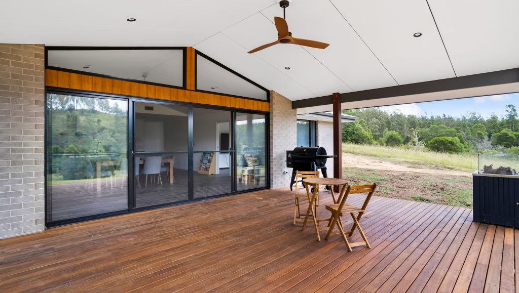 The spacious open plan kitchen includes a 900mm wide oven and cooktop, plenty of bench and cupboard space, a butler’s pantry and expansive living and dining areas, and a big deck, perfect for entertaining.