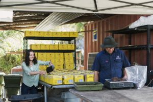 The couple got married and asked their wedding guests for fruit trees as wedding gifts. These became their citrus orchard. Then Anna stumbled across an advertisement for a small run-down compost worm business for sale. The couple drove to Medowie near Newcastle and bought it, even though they knew nothing about worm farming and had to make multiple trips to transport the worm containers back to their hill.